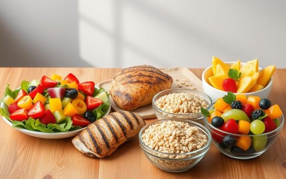 - Propozycje posiłków: Spróbuj płatków owsianych z owocami na śniadanie, sałatki z kurczakiem na lunch, omletu z warzywami na kolację oraz zdrowych przekąsek, takich jak jogurt grecki z orzechami.