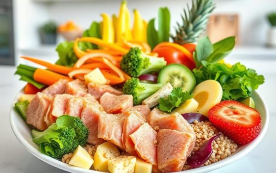 - Obiad: Kurczak podany na musie kalafiorowym, dostarczający solidną porcję białka oraz minerałów.